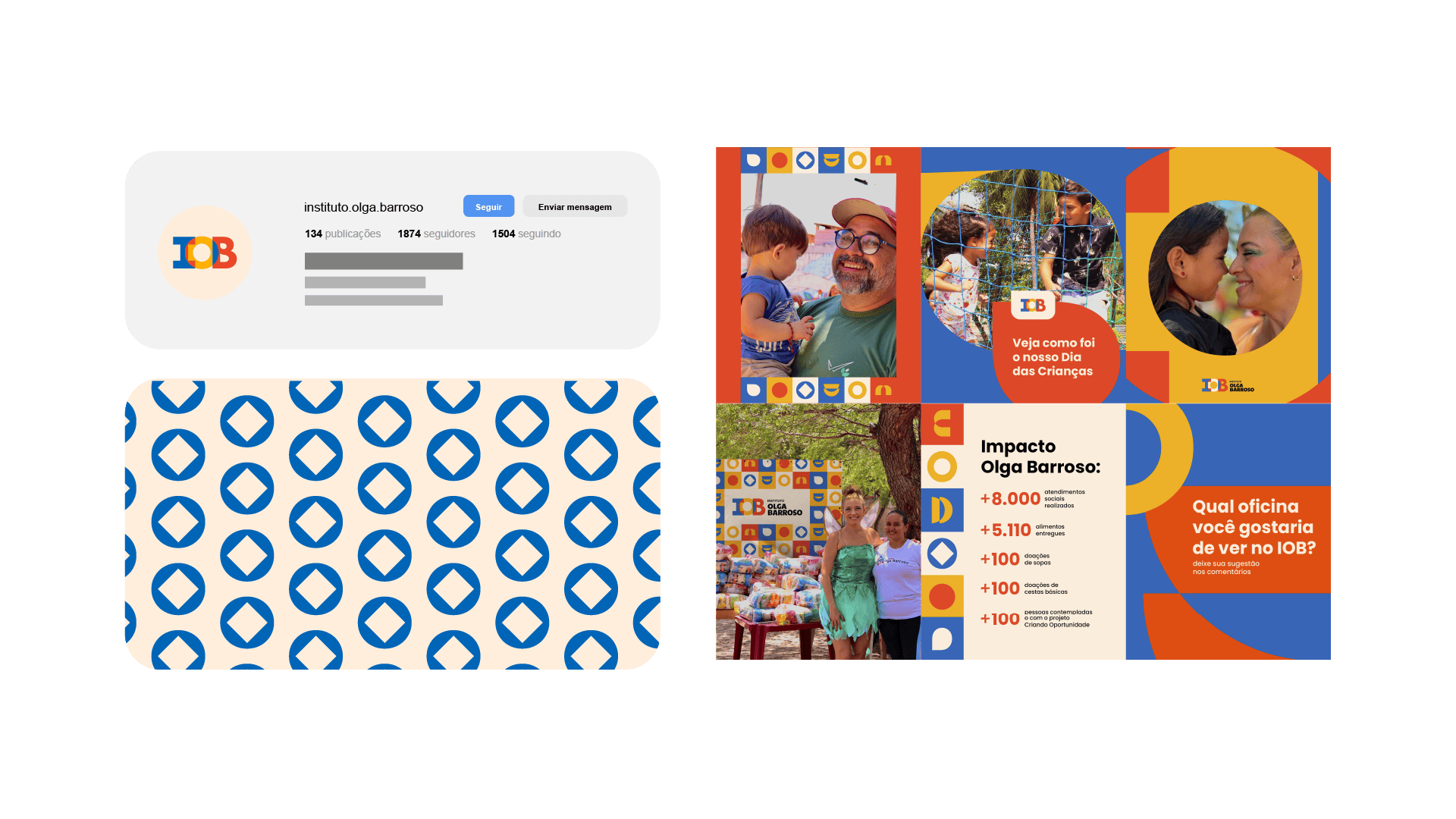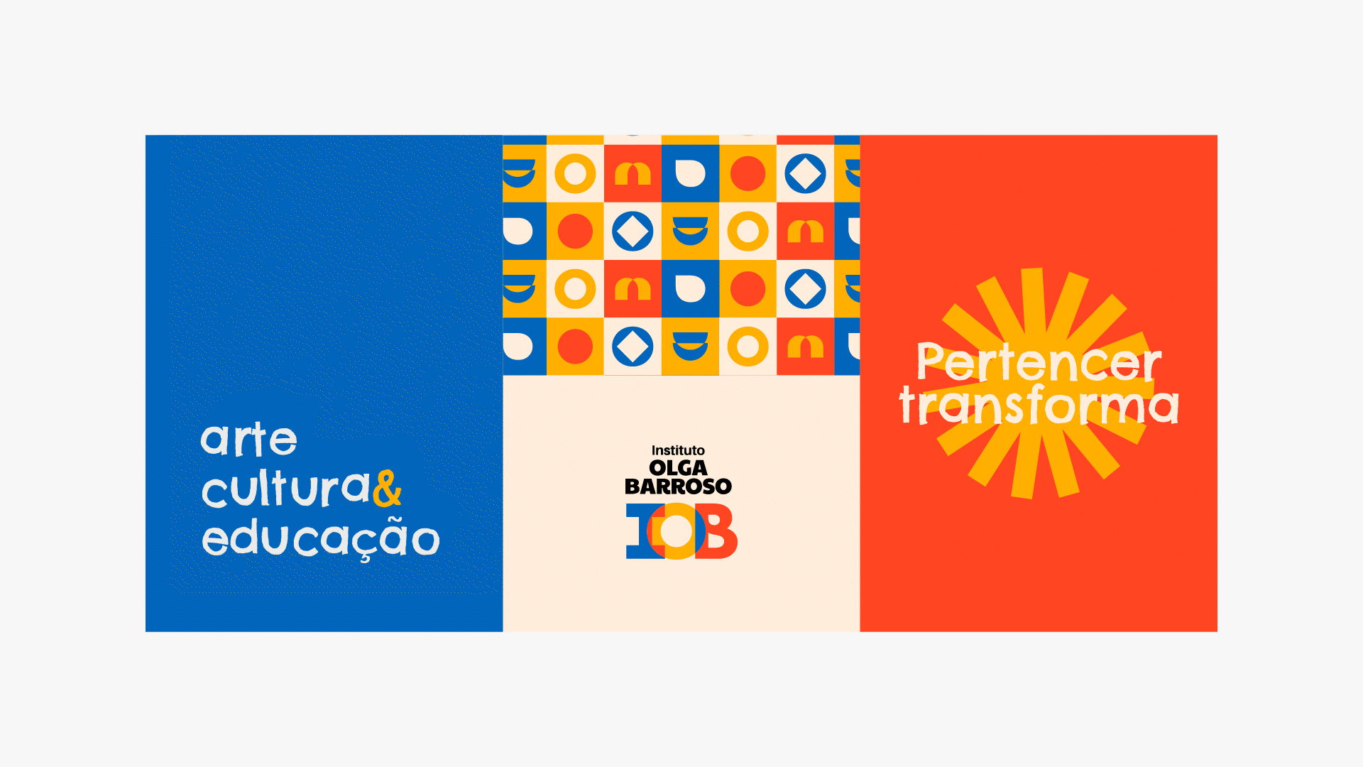 The Olga Barroso Institute was born with a clear mission: to transform Mucuripe through art, culture, and education. But there was a problem: the brand didn’t reflect this impact. The previous identity limited its applications, failed to generate recognition, and didn’t communicate the strength of the project.