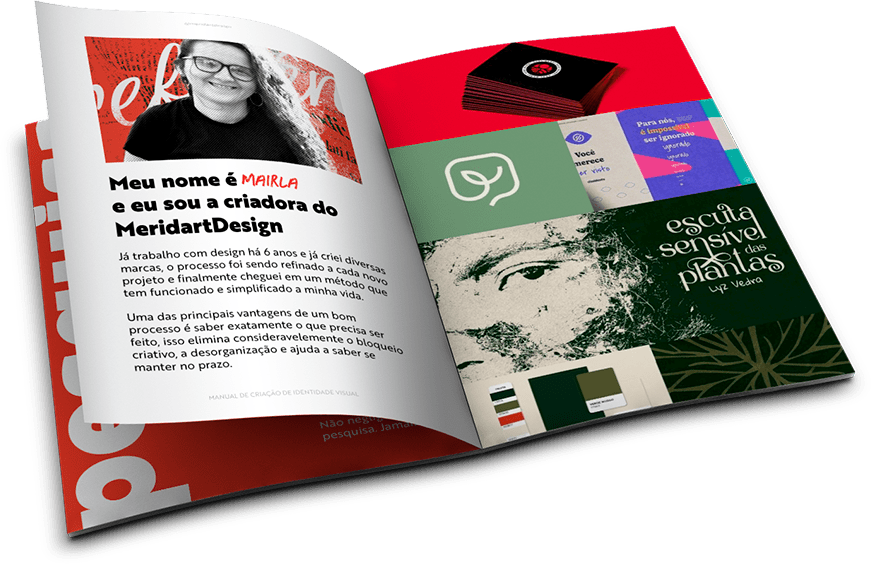 Imediatamente após a compra você vai receber um livro digital de 68 páginas que detalham todos os processos de criação de uma identidade visual com exemplos reais de identidade visuais aprovadas por clientes de verdade.